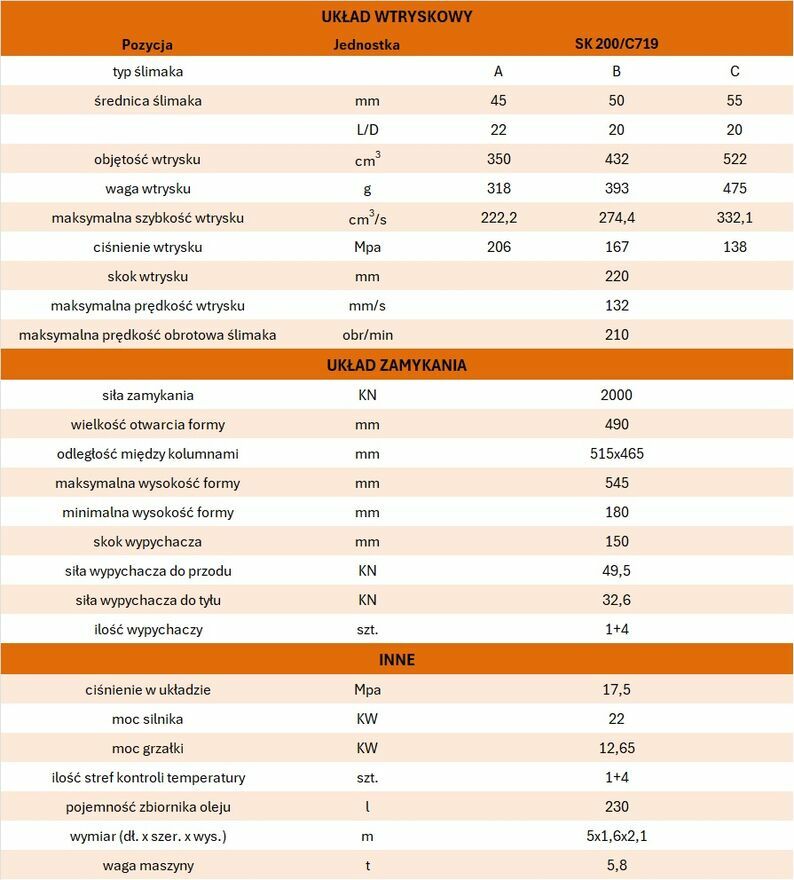 • Bardzo duży skok otwarcia formy jest o 10–20% większy niż w standardowych maszynach